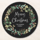 Modern Wreath and Script | Merry Christmas Round Paper Coaster