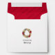 This is a stylish, modern CHRISTMAS WREATH square envelope, showing the small decorative Christmas wreaths on the front and on the back and customisable name and address in light grey typography. The envelope lining has a subtle CHRISTMAS BLESSINGS in a tiled pattern against a bright red background. Matching items are available in the CHRISTMAS WREATH Collection by Berean Designs.