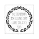 Elegant laurel wreath circle round perimeter with vertical handwritten style font customisable with your four lines of any text, great for all purpose or wedding stamp.