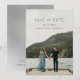 This Save the Date Card features minimal text to let the photo stand out. Add extra information on the back with a watercolor texture background.