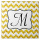 Modern Yellow Glitter Chevron Zig Zag Stripe Fabric Print Pattern Monogram Initial Decorative Display Tile Personalised