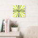 This clock features a fun striped design in shades of yellow and green.
