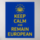 Decorate your room with this cool poster with this comforting "Keep Calm and Remain European" slogan. Yellow and blue Keep Calm with crown and European Union font in a vector image. The yellow and blue are the official colours of the European Union. As are the circle of yellow stars.