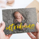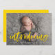 Modern Yellow Brush Script Introducing Photo Birth Announcement