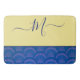 Modern Yellow Coastal Blue Seashell Monogram Bath Mat