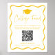 Add a vibrant touch to your graduation celebration with this Modern Wavy Frame college fund graduation QR code sign. The design features an illustration of a graduation cap at the top, with "College Fund" displayed in bold yellow handwritten script, framed by a yellow wavy border. Personalise this graduation poster with your custom text and a link to your preferred payment service for easy contributions. This stylish graduation party sign is perfect for showcasing at your high school graduation party or any graduation event, adding a unique and fun element to your celebration!