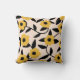 Modern Yellow Flowers Black Leaves Pattern Cushion