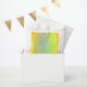 Bright yellow, orange & light blue geometric gradation with slight marbled effect.