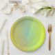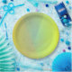 Bright yellow, orange & light blue geometric gradation with slight marbled effect.