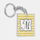 Modern Yellow Glitter Chevron Zig Zag Stripe Monogram Initial Personalised Key Chain