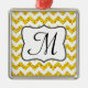 Modern Yellow Glitter Chevron Zig Zag Stripe Fabric Print Pattern Monogram Initial Christmas Ornament Personalised