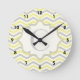 Modern yellow, grey, ivory chevron pattern custom round clock