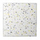 This ceramic tile features a faux terrazzo pattern with tiny specks in yellow and grey shades on a white background. Customise it with your own colours by clicking on Edit design.