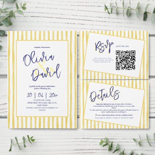 Modern Yellow Hand Written Pinstripe Italy Wedding