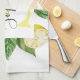 Modern Yellow Lemons Frame & Leaves With Name Tea Towel
