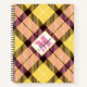 Girly, elegant and trendy customisable notebook features "personalised name & monogram" and yellow-pink plaid tartan background.