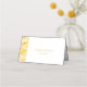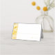 Modern yellow rose wedding table place card that includes the bride and groom's names and their wedding date.