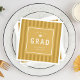 Graduation party napkins with a modern, sporty, yellow striped background, ideal for athletes.
