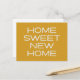 Announce your big move with a modern and stylish twist using this "Home Sweet New Home" postcard, designed to make sharing your new address both simple and chic. Featuring clean, bold typography in crisp white against a warm mustard background, this postcard is perfect for anyone who loves minimalistic design with a pop of colour. The back is fully customisable for your personal details, ensuring it feels uniquely yours while staying effortlessly trendy. Perfect for families, couples, or individuals moving to their next chapter, this postcard is a cheerful way to share your exciting news with loved ones.