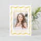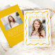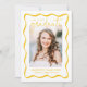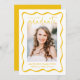 Share your exciting achievement with this Modern Yellow Wavy Frame graduation announcement, designed to make a bold statement. The front features a vertical graduate photo framed by a yellow wavy border on a white background, with "Graduate" elegantly written in a handwritten yellow script. Personalise it with your name, graduation year, and school for a unique and stylish touch. The back showcases a horizontal photo with space for a custom message, perfect for sharing your gratitude or future plans. Ideal for high school and college graduates, this vibrant and modern design is a beautiful keepsake for family and friends.