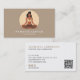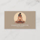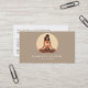 Modern yoga instructor business cards with a calming earthy design, ideal for certified yoga teachers, meditation coaches, and wellness practitioners offering holistic services. The front features an elegant illustration of a woman meditating in lotus pose, centred against a neutral taupe background and soft circular sunburst, evoking balance, grounding, and inner peace. The reverse side complements the look with minimalist white space, simple typography, and a functional scannable QR code for easy access to scheduling or contact links. Perfect for vinyasa, hatha, prenatal, or restorative yoga specialists, this design projects professionalism, serenity, and modern holistic branding.