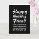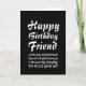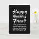 Celebrate your friend's birthday with a laugh. This funny card features a sleek, black and white design with striking typography.