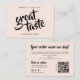 My order arrived 2 weeks from tthe order date.   The card looks great.  I would have liked some more design options such as stock images, such as some wedding rings, which I would have liked to include on my business card.