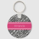 Modern Zebra Print With Pink Stripe and Name Key Ring