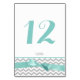 Modern cheveron or zig zag pattern in grey and white with aqua bow printed table number card to compliment our invitation set, can be personalised and ordered individually. All parts of this card are printed, there is no real ribbon attached.