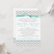Grey zig zag or chevron style pattern with a pretty aqua coloured bow wedding invitation.