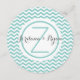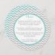 Grey and Aqua zig zag or chevron pattern design small round menu. Personalise text as preferred and add the bride and groom's name or monogram on back.