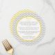 Grey and yellow zig zag or chevron pattern design small round menu. Personalise text as preferred and add the bride and groom's name or monogram on back.