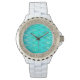 This Watch features a modern zigzag pattern in beautiful turquoise tones. Like ocean waves. Digital art, cool and exotic accessory!