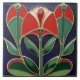 Please note this is a 2D print with a faux relief look. The shiny effect at the top of the flower is part of the 2D artwork graphic. // "floral tile art nouveau", "modernist ceramic decorative flower", "vintage stained glass flowers", "symmetrical red dark green blue", "botanical art deco symmetry", "elegant stylish sophisticated lines", "classic nature spring garden", "abstract geometric antique leaves", "flowery stain glass inspired", "navy faux relief gold"