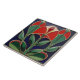 Modernist Art Nouveau Green & Red Flower Curves Ceramic Tile