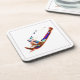 This coaster features a graphic image of a modified race car at speed.