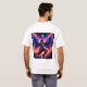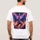 This super fine a Men,s T-shirt,s front side fashion with a death metal design with a grotesque and disfigured carnival with light colour background for t-shirt design.This amaging T-Shirt,s back side a dynamic male devil angel, with wings that blaze with the trails of shooting stars, racing across a keyboard that spans the cosmos, representing the astronomical speed and agility demanded in esports. with light colour background for t-shirt design.