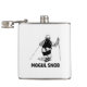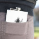The flask itself is fine. It’s a cheap flask, obviously bought in bulk, however am prepared to overlook that. Given that it is a personalized item, I would have liked to have seen gift boxing instead of the generic packaging. Terrible printing, and/or quality. It’s a cheap, tacky vinyl. It is not cut straight and is also applied in a way that it is overhanging the bottom, causing the glue to catch on items and it will eventually roll and tear, damaging the wrap.