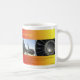 Coffee cup depicting the development of technology over the past 100 years in the Mojave Desert.