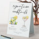 This summer signature cocktails table tent sign features simple black typography above 2 of your favourite drinks and their ingredients for your coastal wedding bar. A chic Mojito and Lemon Drop Martini drawing add a fun flair to your bar menu. Complete with the couple's names and date for their reception.