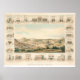 The Bancroft Library Presents: General view of town from outskirts. Marginal images include commercial, public and residential buildings; scenes include pedestrians, horses and wagons.