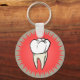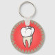 Keep your keys on this funny basic button keychain with a freshly pulled Molar on a red starburst. The background is a light beige.