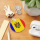 The state flag of Moldova is a vertical tricolor of blue, yellow, and red, charged with the coat of arms of Moldova (an eagle holding a shield charged with an aurochs) on the centre bar.