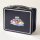 This is a standard metal lunchbox that appears to work just fine. We designed this box ourselves with an uploaded photo and custom text on the front and back. It looks absolutely beautiful except the front of the lunchbox is not centered like it shows in the photo. The print borders don't align with the inset flat part of the box where the preview photo online showed it perfectly centered in there. The back looks nice and centered though.