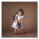 Molly in her birthday pinafore dancing with her mini-Molly doll