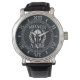 A Spartan warrior armour Molon Labe laurels mask expression silver chrome like graphic on a fine custom fashion watch. Come and get them!