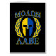 A bold Spartan warrior armour Molon Labe laurels mask expression on a yellow and blue graphic accent print decor for a fine custom gift idea. Come and get them!