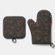 Molten lava volcano red black oven mitt & pot holder set