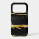 Indulge in pure luxury with the Achempong: The Auric Cascade iPhone 17 Case. This opulent, high-contrast visual masterpiece features dynamic, flowing rivulets of molten appearance and rich golden hues elegantly swirling against a deep, sophisticated monochrome black background. Accented with subtle golden borders and delicate sparkles, this design embodies timeless elegance and contemporary flair. This premium Achempong Zazzle case offers durable protection and perfectly captures a look of radiant majesty for the modern luxury consumer, showcasing high-end abstract art as a sophisticated mobile technology accessory.