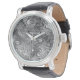 Watch with a cool "liquid metal look" abstract design, and swirling, bubbling shapes in shades of silver grey. Can be used as a background for your own text, images and ideas. Available in all style options. Please note this is a printed digital art image, it does not shine or contain real metal.